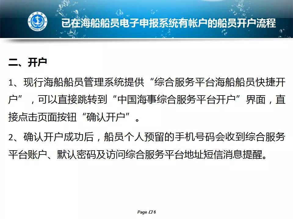 船員電子申報系統(tǒng)已正式啟用新系統(tǒng),那么該如何成為新用戶呢? 趕緊看看下方↓的個人開戶說明。 老系統(tǒng)已有賬號的同學(xué)請看向這里,進(jìn)入老系統(tǒng)更新自己手機(jī)號碼→退出老系統(tǒng)登錄界面→點擊快捷開戶。(注意:新人或是老系統(tǒng)忘記密碼無法在老系統(tǒng)更新自己手機(jī)號碼的,只能到海事局現(xiàn)場采集開戶。)